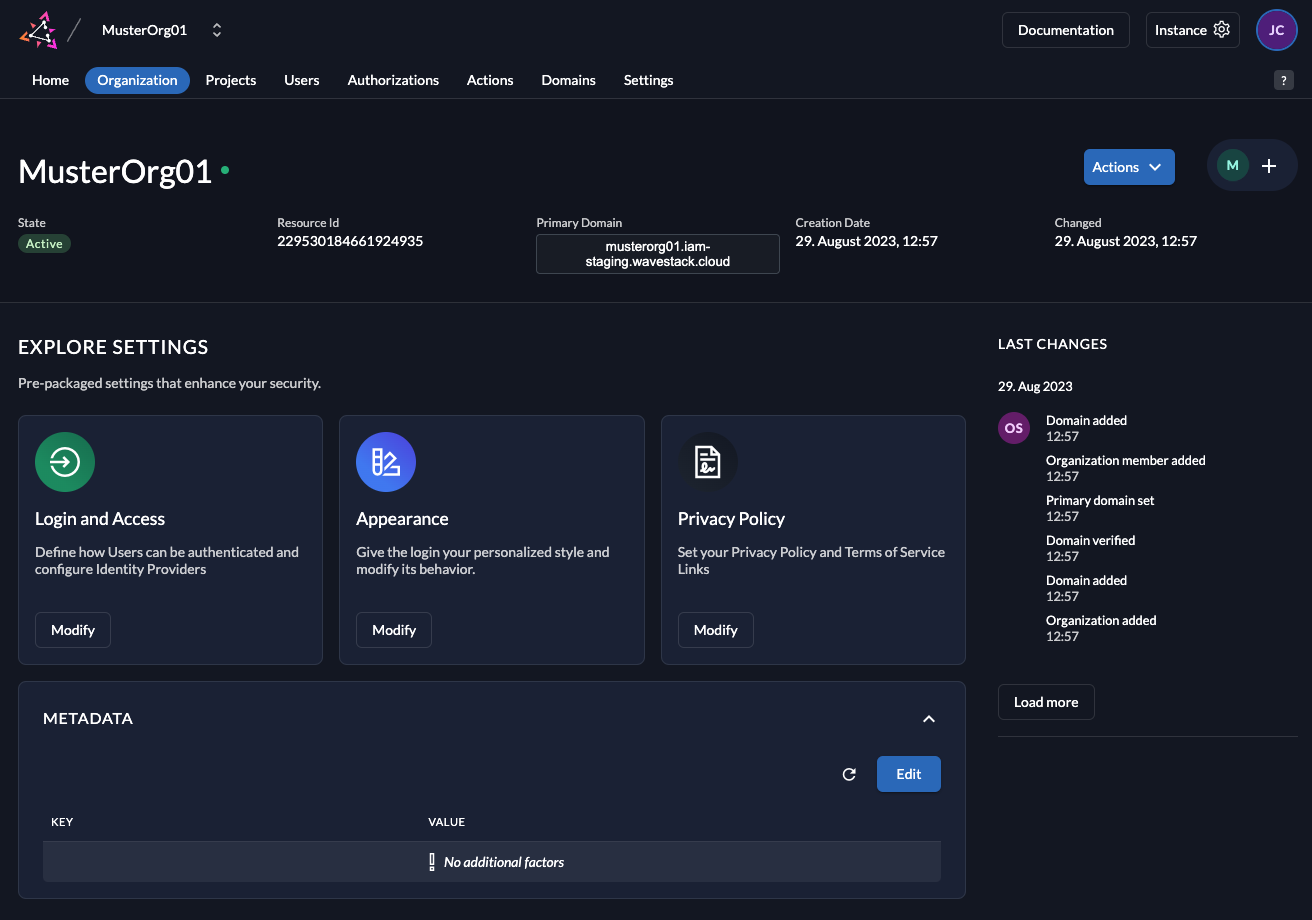 You can log into the Zitadel dashboard with your Wavestack account.